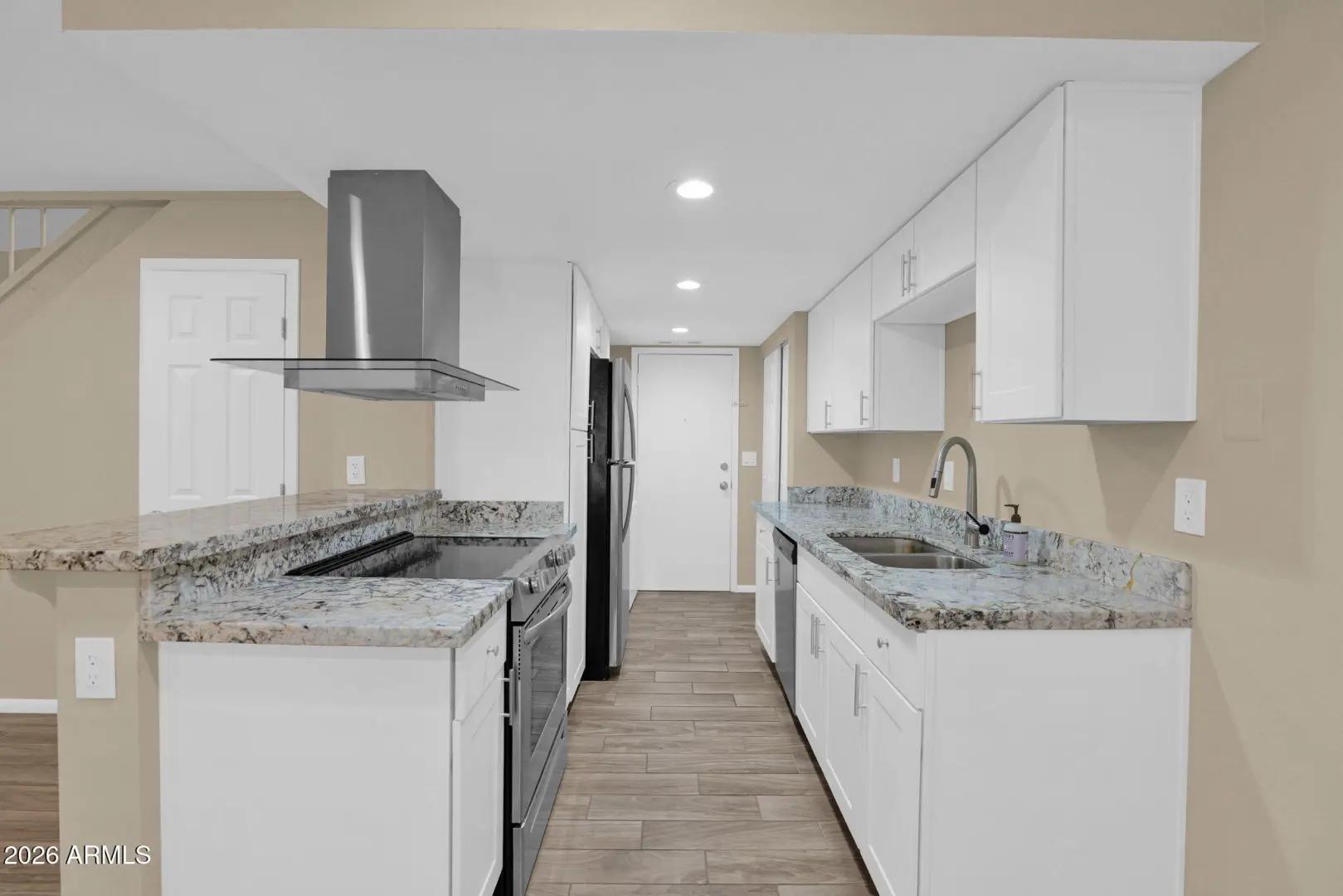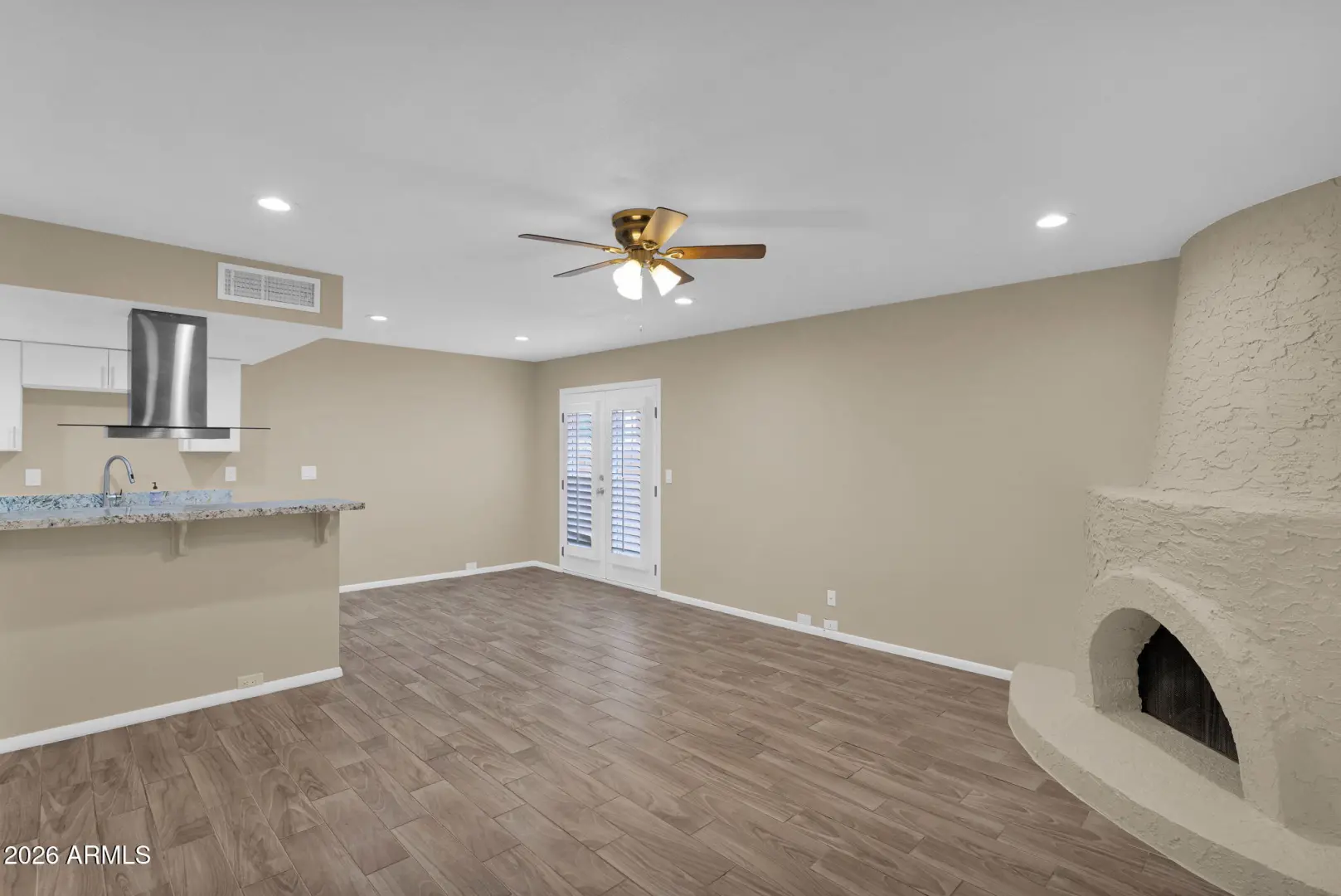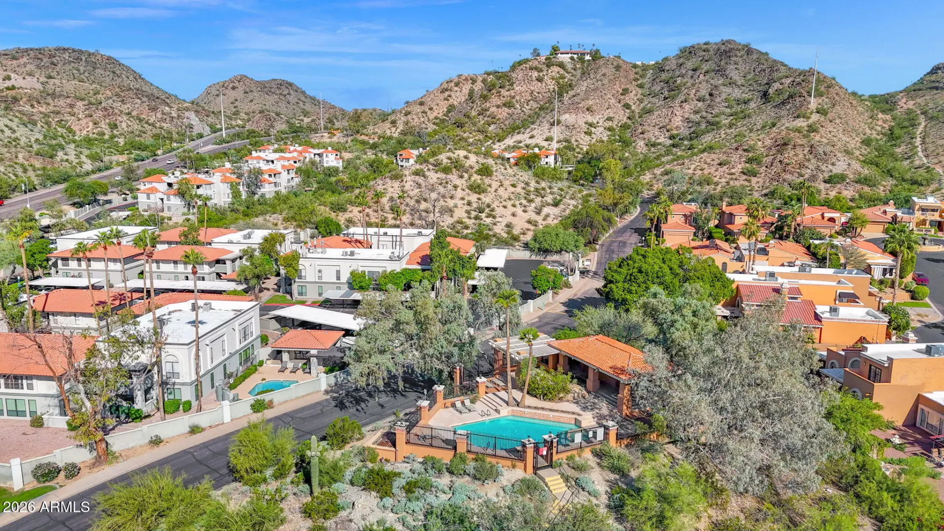 Charming 2-bedroom, 1.5-bath home located in the desirable Pointe Tapatio community, offering true resort-style living with multiple sparkling community pools. This move-in-ready residence features an updated kitchen with granite countertops, white shaker-style cabinetry, stainless steel appliances, and recessed lighting. Neutral ceramic wood-look tile flooring enhances the main living areas, while plantation shutters throughout add timeless appeal. Adobe fireplace. The half bath includes a stylish pedestal sink, and major updates include a newer 13-SEER A/C unit (2023). French doors open to an oversized private patio and side yard—perfect for outdoor entertaining. Upstairs offers two generously sized bedrooms; the primary suite features double closets and French doors leading to a privat