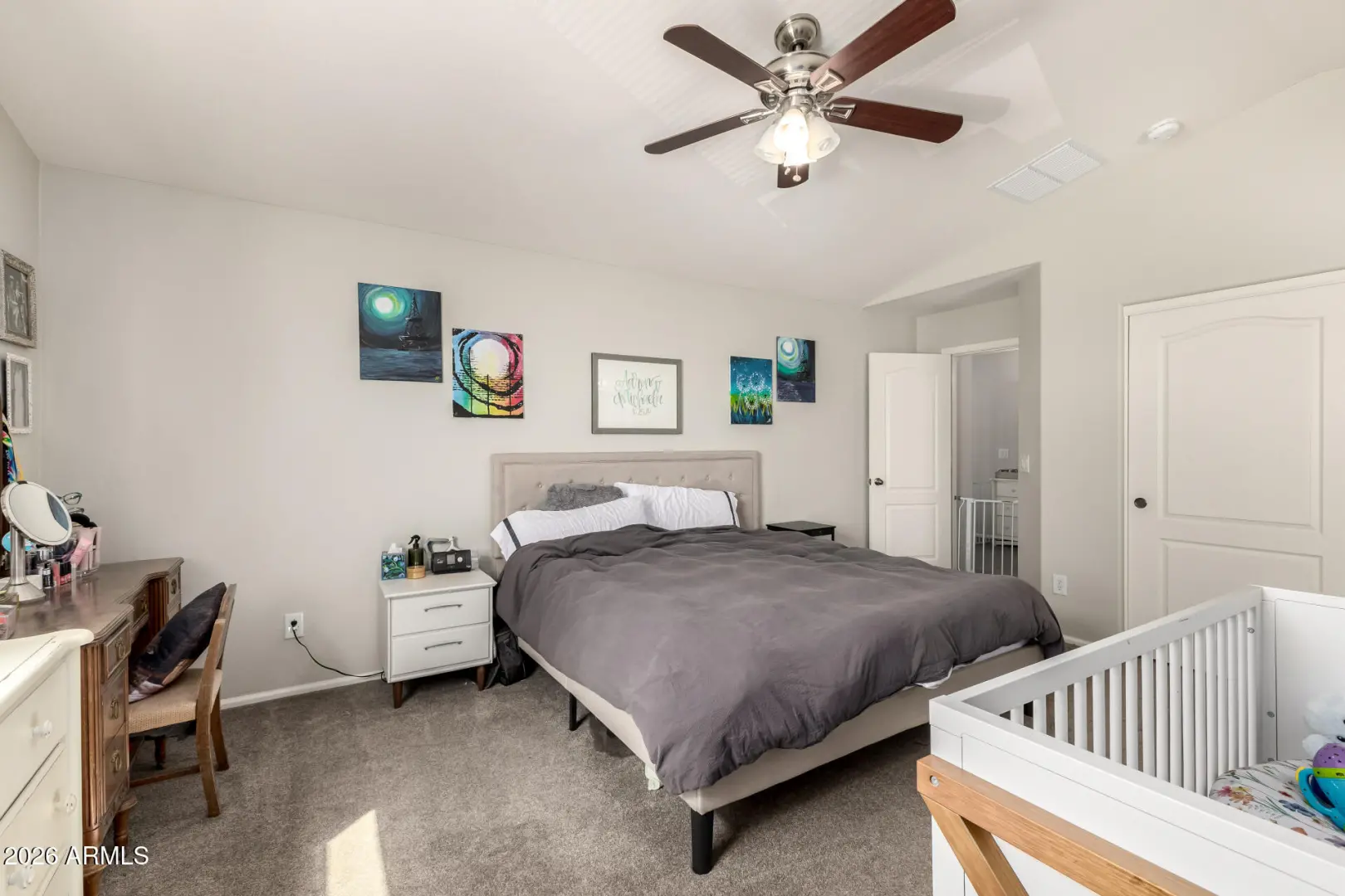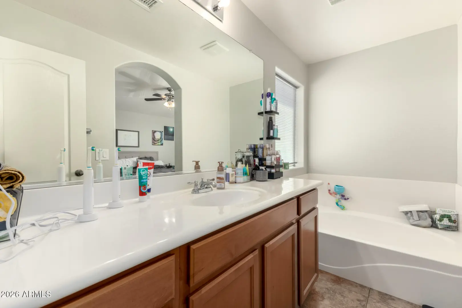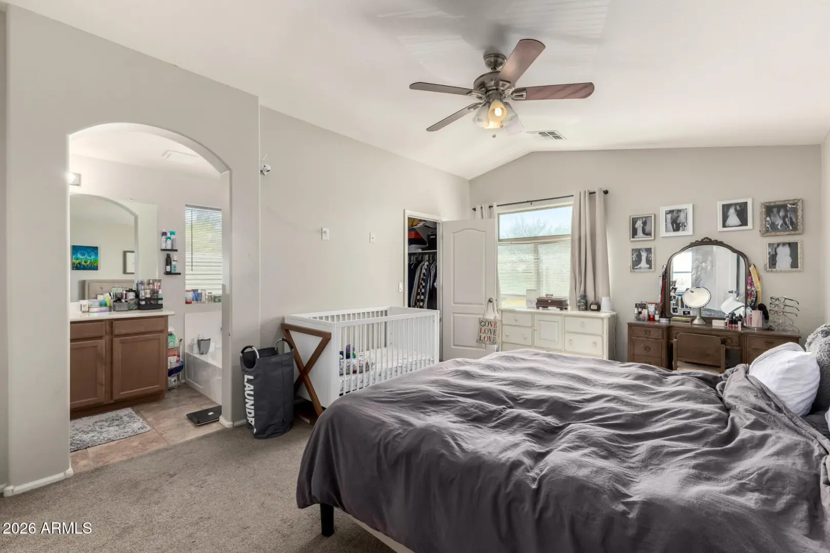 Welcome to one of the largest floorplans in the Pecan Creek community, offering space, light, and a layout that truly works for everyday living. Vaulted ceilings and wood-look flooring create an open, airy feel, with natural light flowing throughout the home. The kitchen is functional and inviting with ample cabinetry, a center island, pantry storage, and a conveniently located laundry room nearby. Upstairs, a versatile loft provides flexible space for an office, second living area, or creative retreat. The primary suite features two separate closet spaces and ensuite with separate soaking tub. Outside, enjoy a covered patio and a generous backyard ready for relaxing, entertaining, or future personalization. Well-maintained and ideally located near local amenities, this home delivers