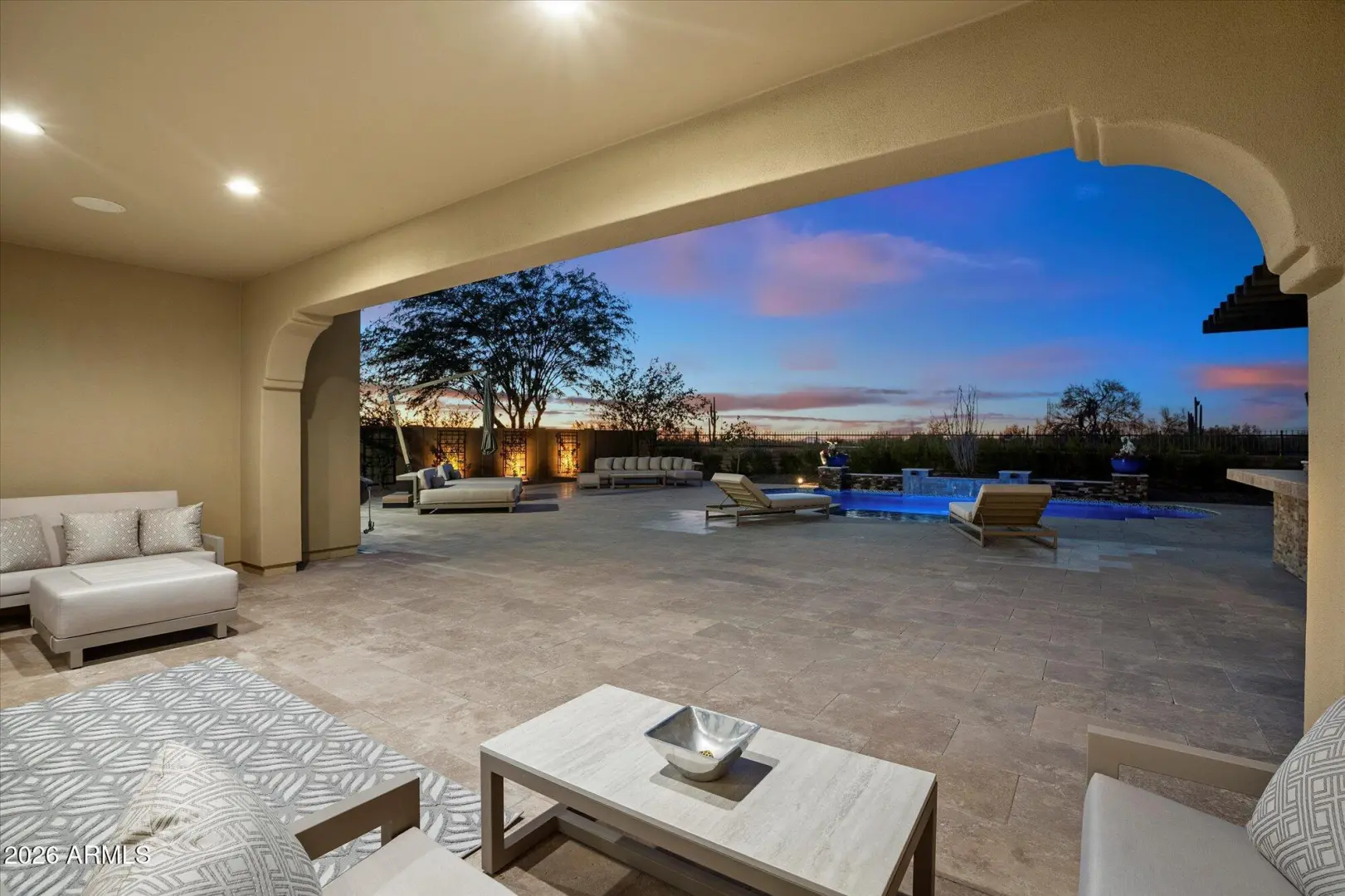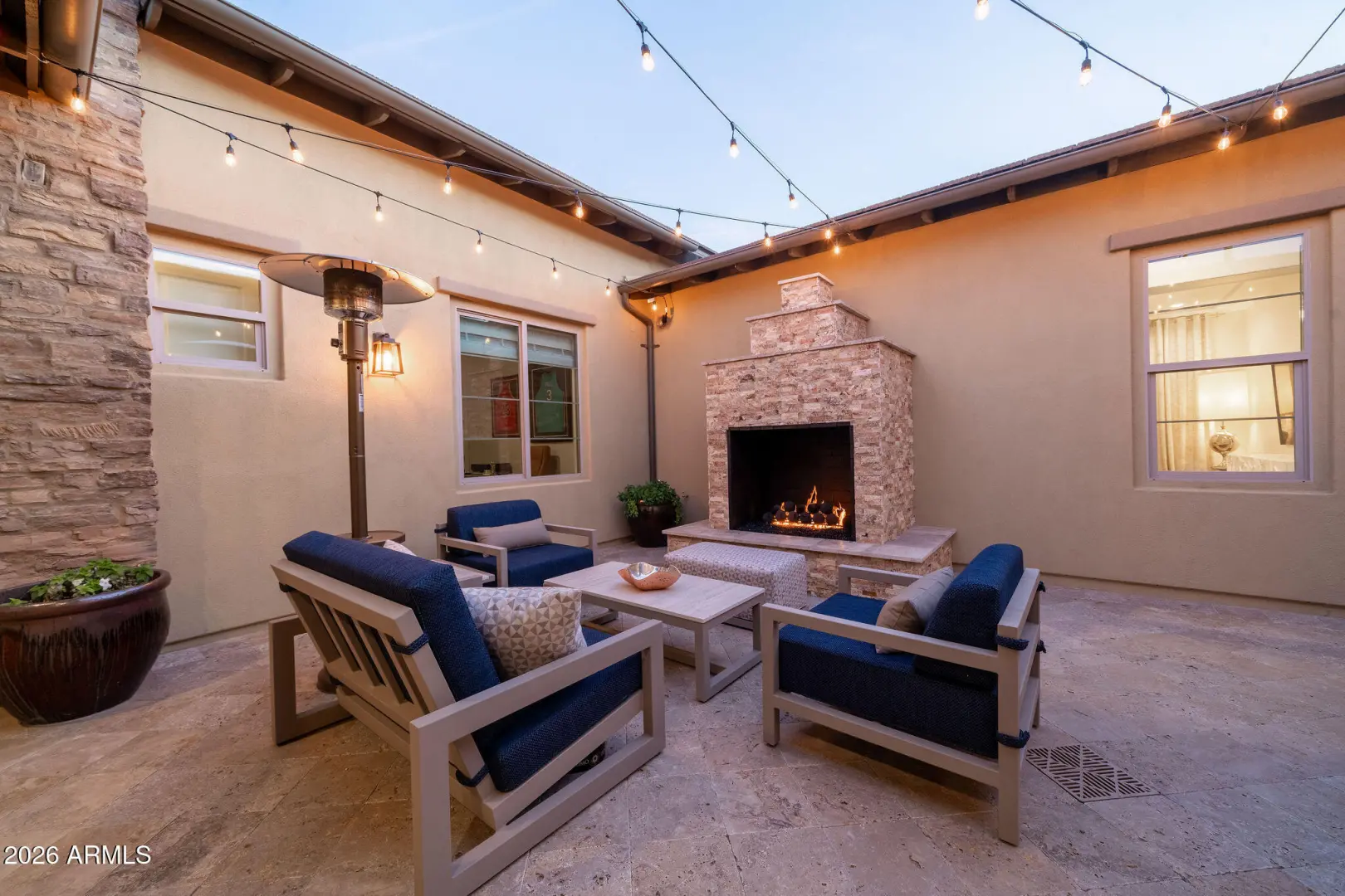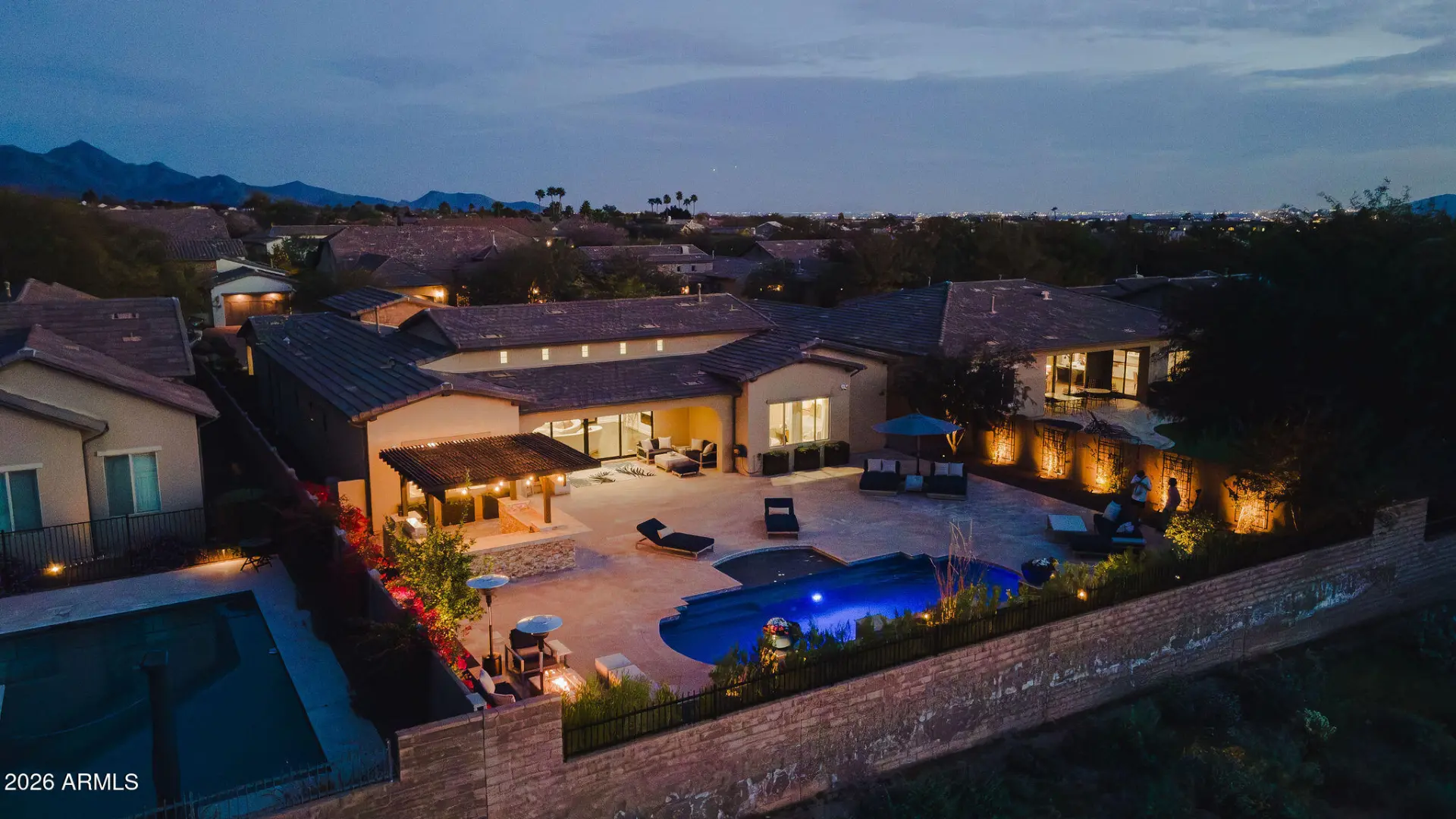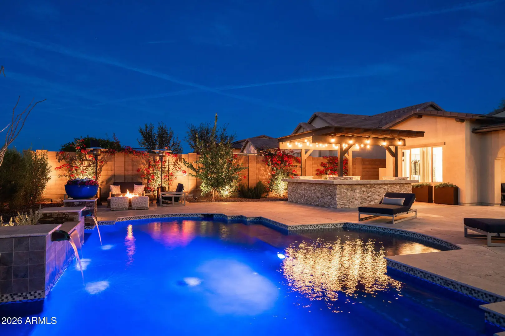 A stunning single-level home nestled in the exclusive gated community of Bocara, backing up to NAOS desert views. Privacy and fine living to include a 264 sq ft casita/Office by the front entrance. Beautifully paved courtyards; open, zero-grade floor plan designed for modern living and elegant indoor and outdoor entertaining. The chef's kitchen features top-of-the-line Dacor professional appliances and a striking quartz island and in addition custom clear Alder plantation shutters to enhance the natural light and aesthetic. The spacious primary suite is a true retreat with Carrera marble finishes and an expansive walk-in closet. The backyard is an entertainer's dream, featuring a sparkling pool, pergola-covered BBQ, built-in fire pit, and clear open views. NOT TO BE MISSED.