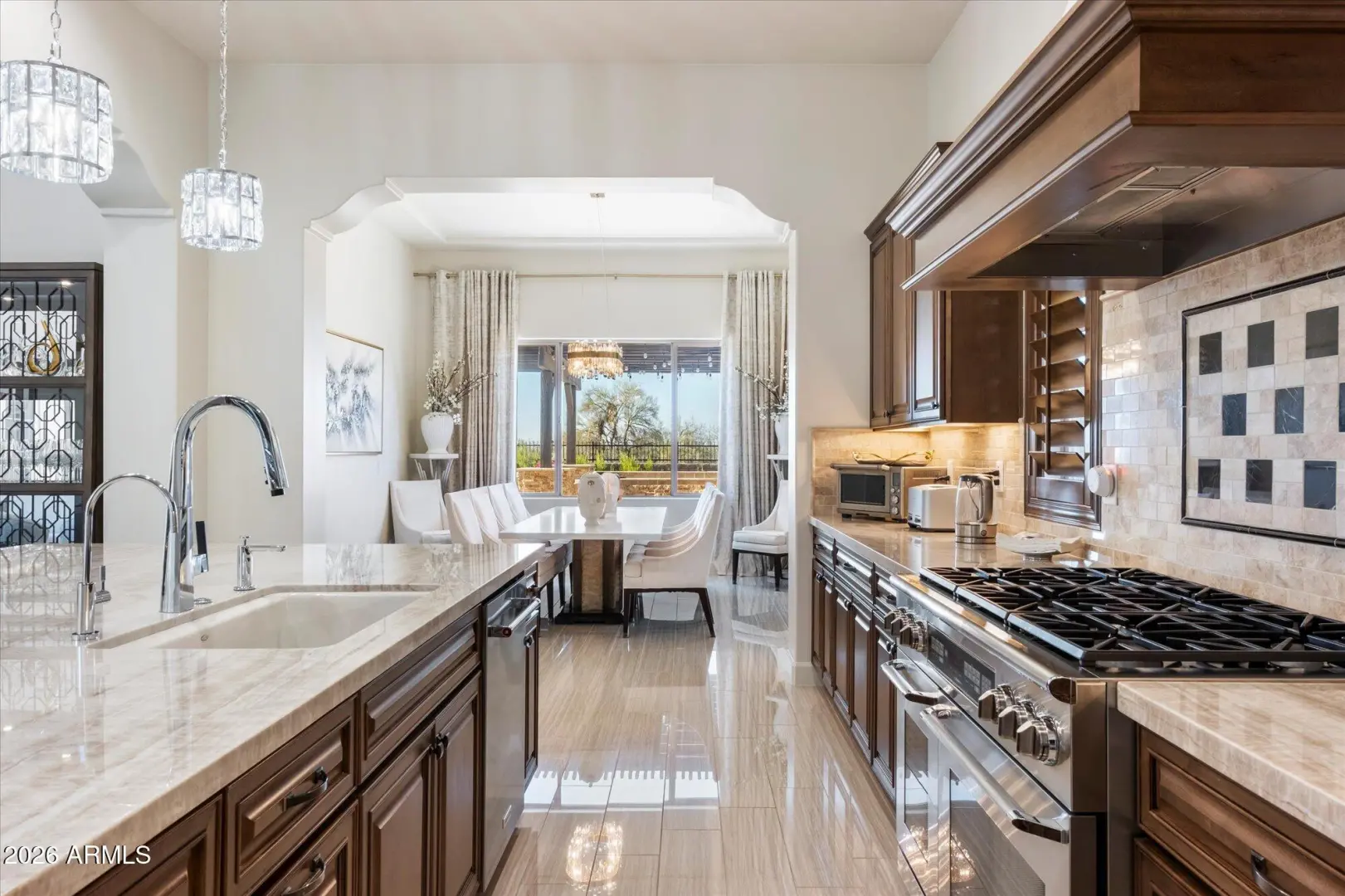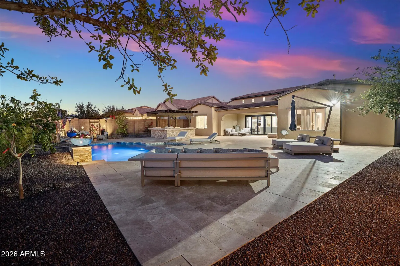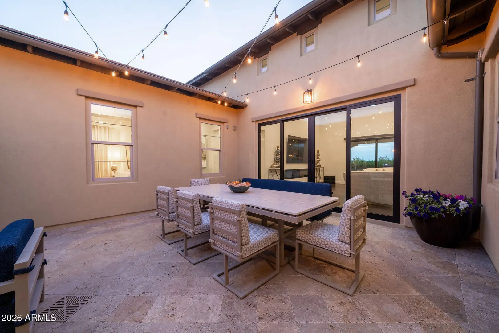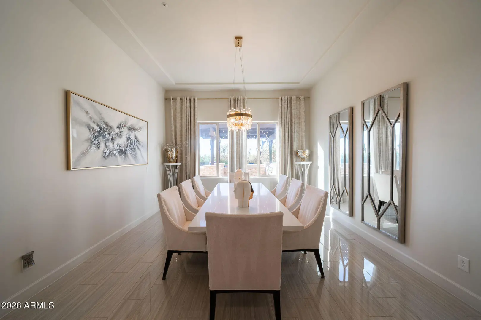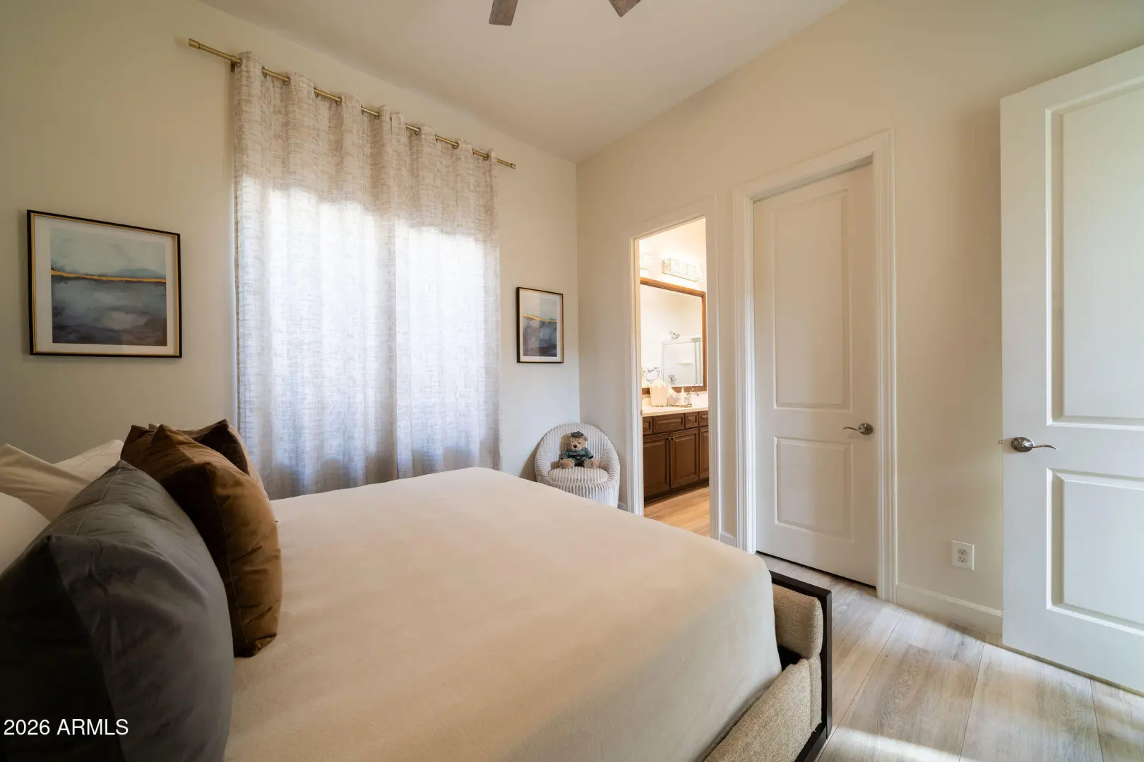 A stunning single-level home nestled in the exclusive gated community of Bocara, backing up to NAOS desert views. Privacy and fine living to include a 264 sq ft casita/Office by the front entrance. Beautifully paved courtyards; open, zero-grade floor plan designed for modern living and elegant indoor and outdoor entertaining. The chef's kitchen features top-of-the-line Dacor professional appliances and a striking quartz island and in addition custom clear Alder plantation shutters to enhance the natural light and aesthetic. The spacious primary suite is a true retreat with Carrera marble finishes and an expansive walk-in closet. The backyard is an entertainer's dream, featuring a sparkling pool, pergola-covered BBQ, built-in fire pit, and clear open views. NOT TO BE MISSED.