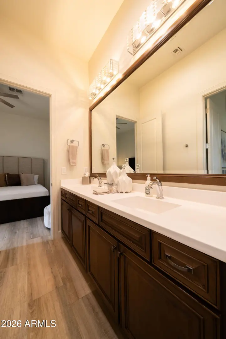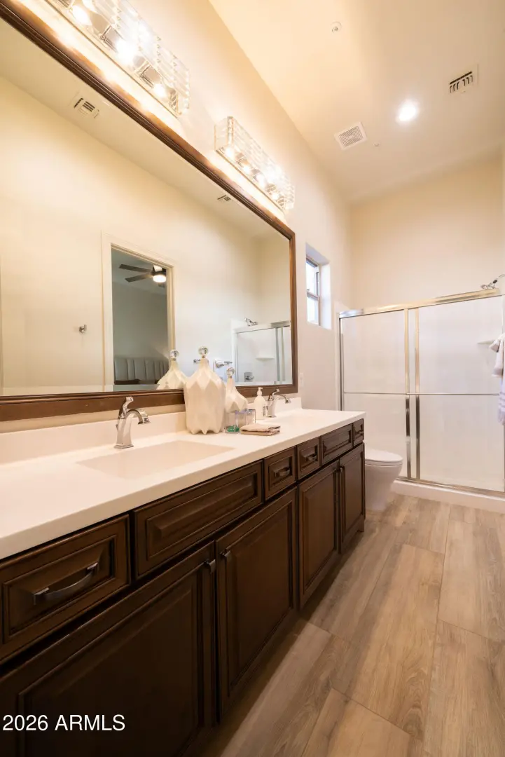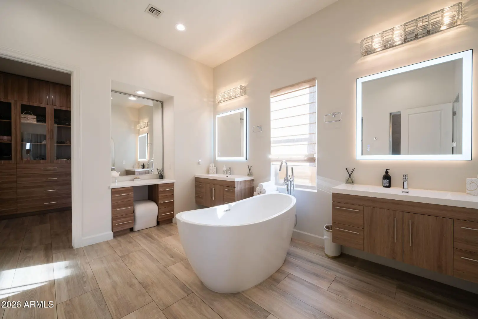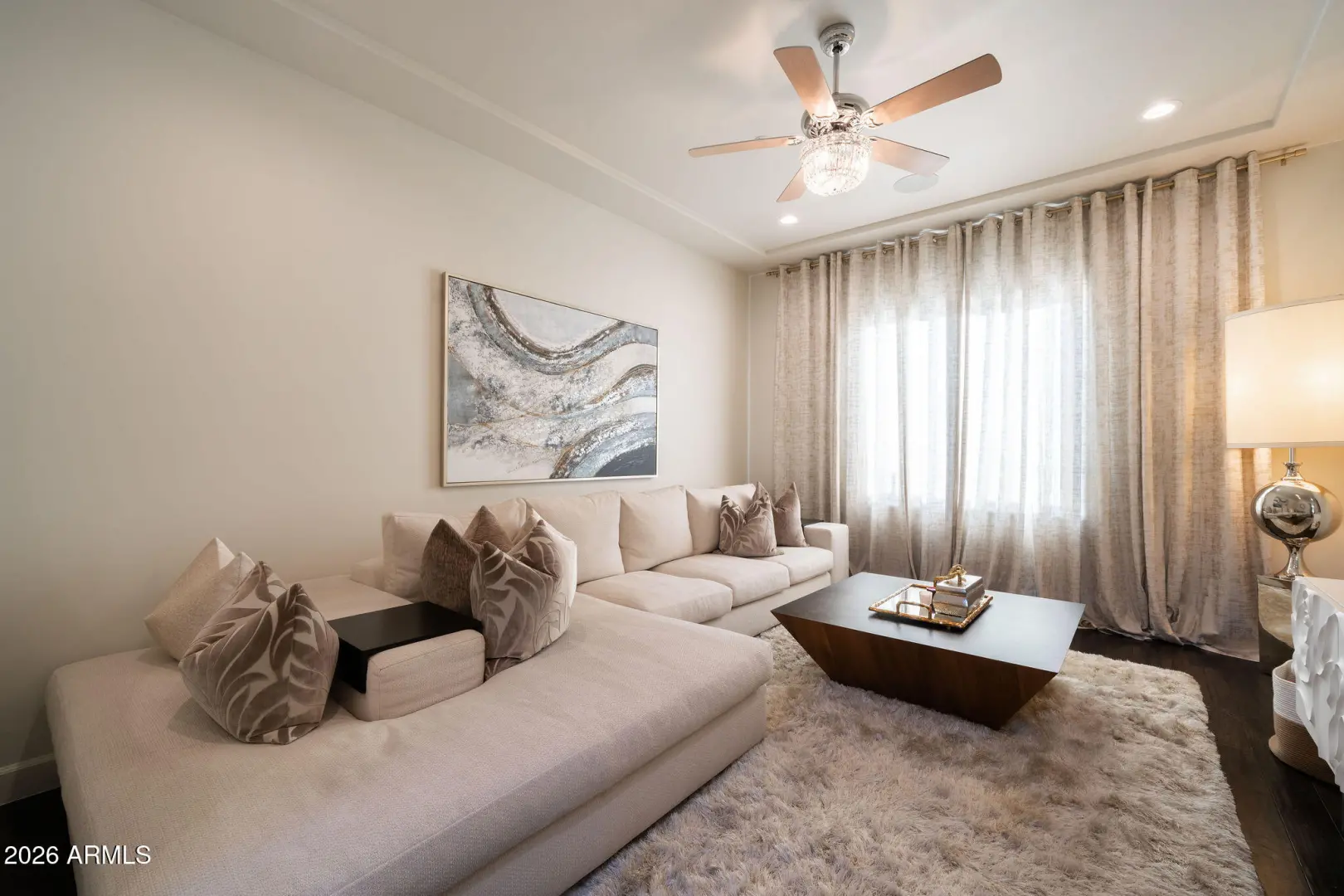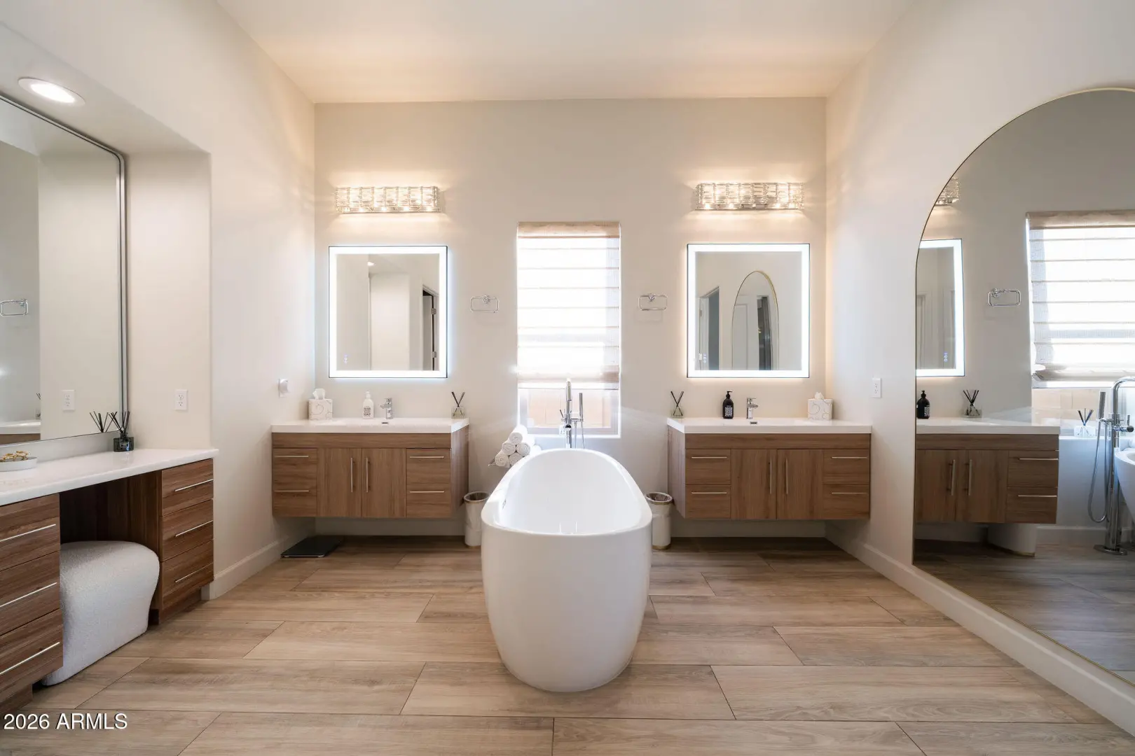 A stunning single-level home nestled in the exclusive gated community of Bocara, backing up to NAOS desert views. Privacy and fine living to include a 264 sq ft casita/Office by the front entrance. Beautifully paved courtyards; open, zero-grade floor plan designed for modern living and elegant indoor and outdoor entertaining. The chef's kitchen features top-of-the-line Dacor professional appliances and a striking quartz island and in addition custom clear Alder plantation shutters to enhance the natural light and aesthetic. The spacious primary suite is a true retreat with Carrera marble finishes and an expansive walk-in closet. The backyard is an entertainer's dream, featuring a sparkling pool, pergola-covered BBQ, built-in fire pit, and clear open views. NOT TO BE MISSED.