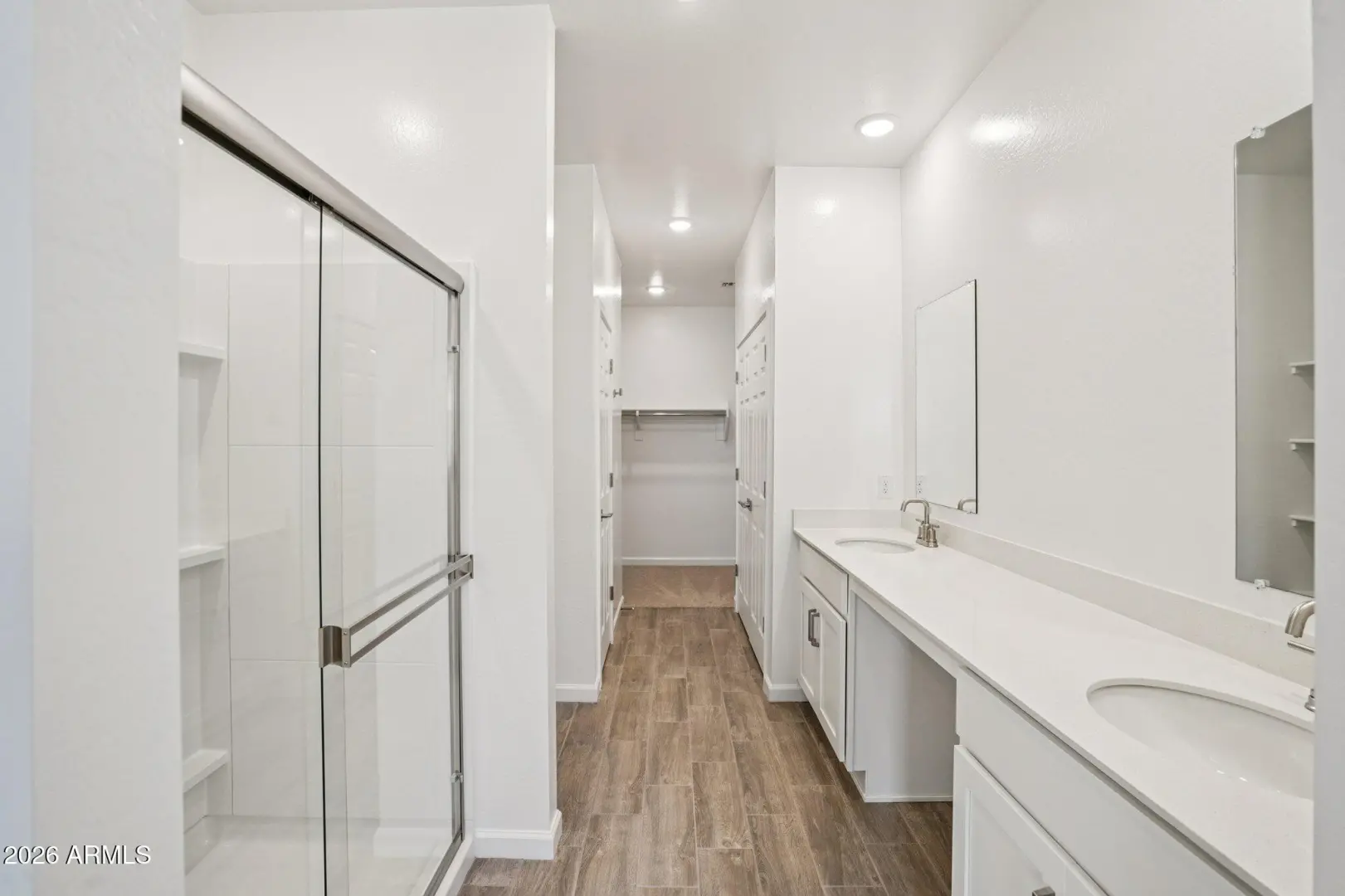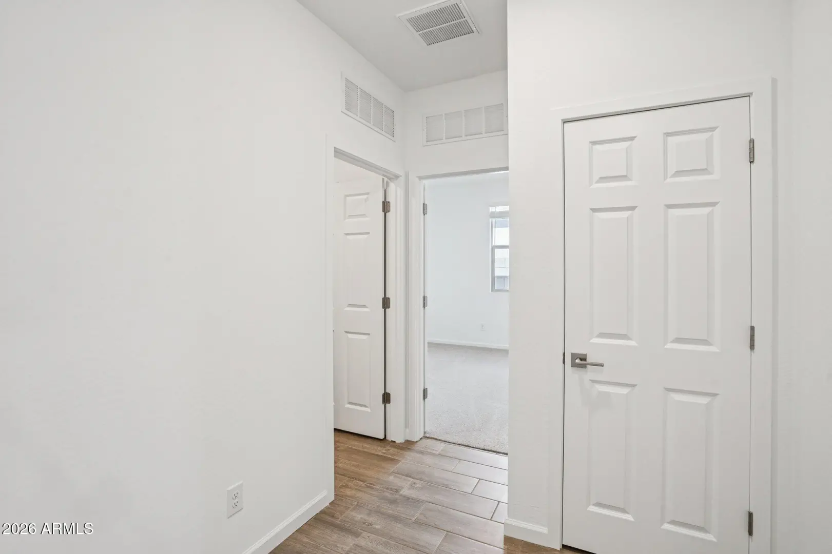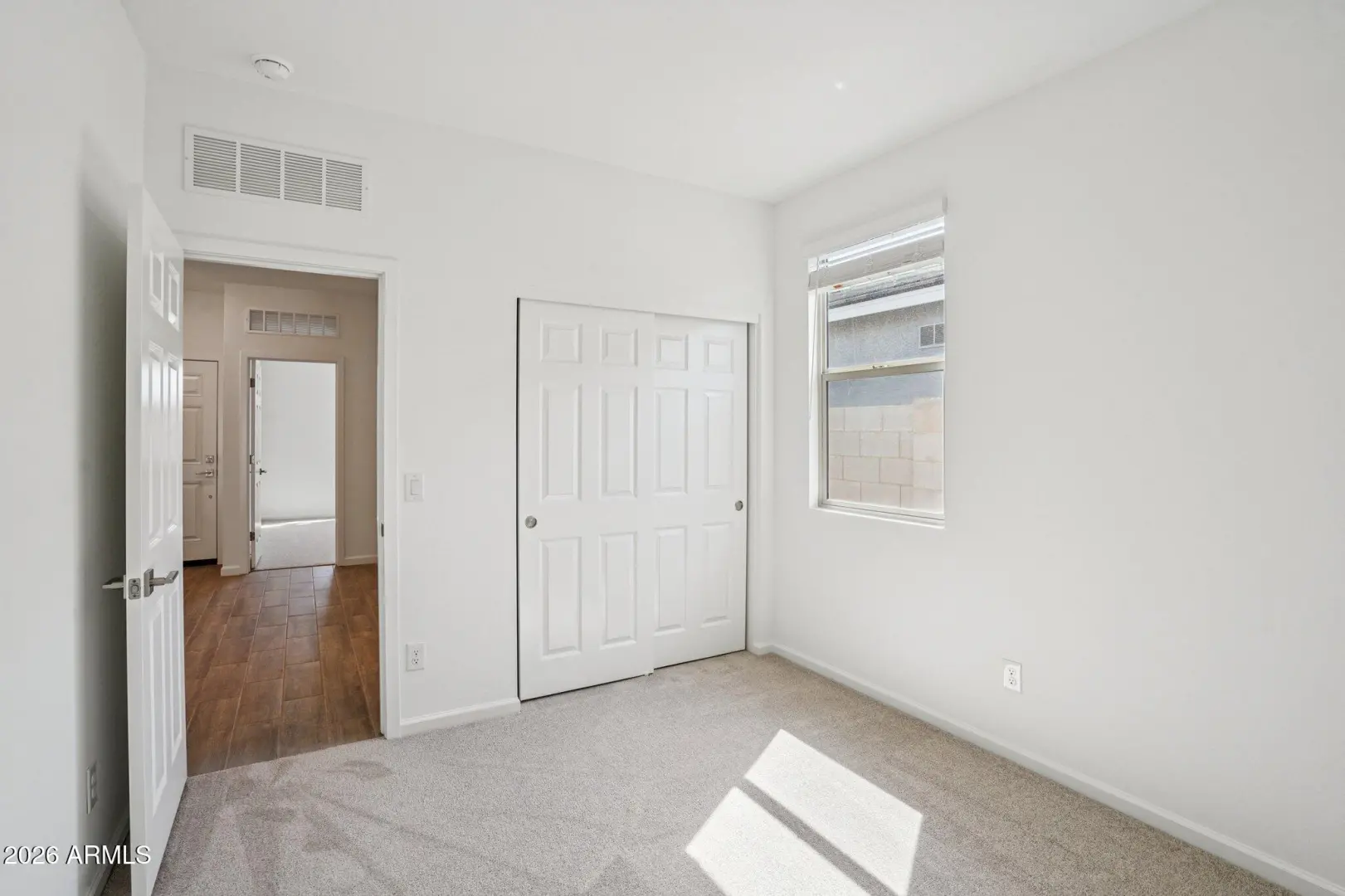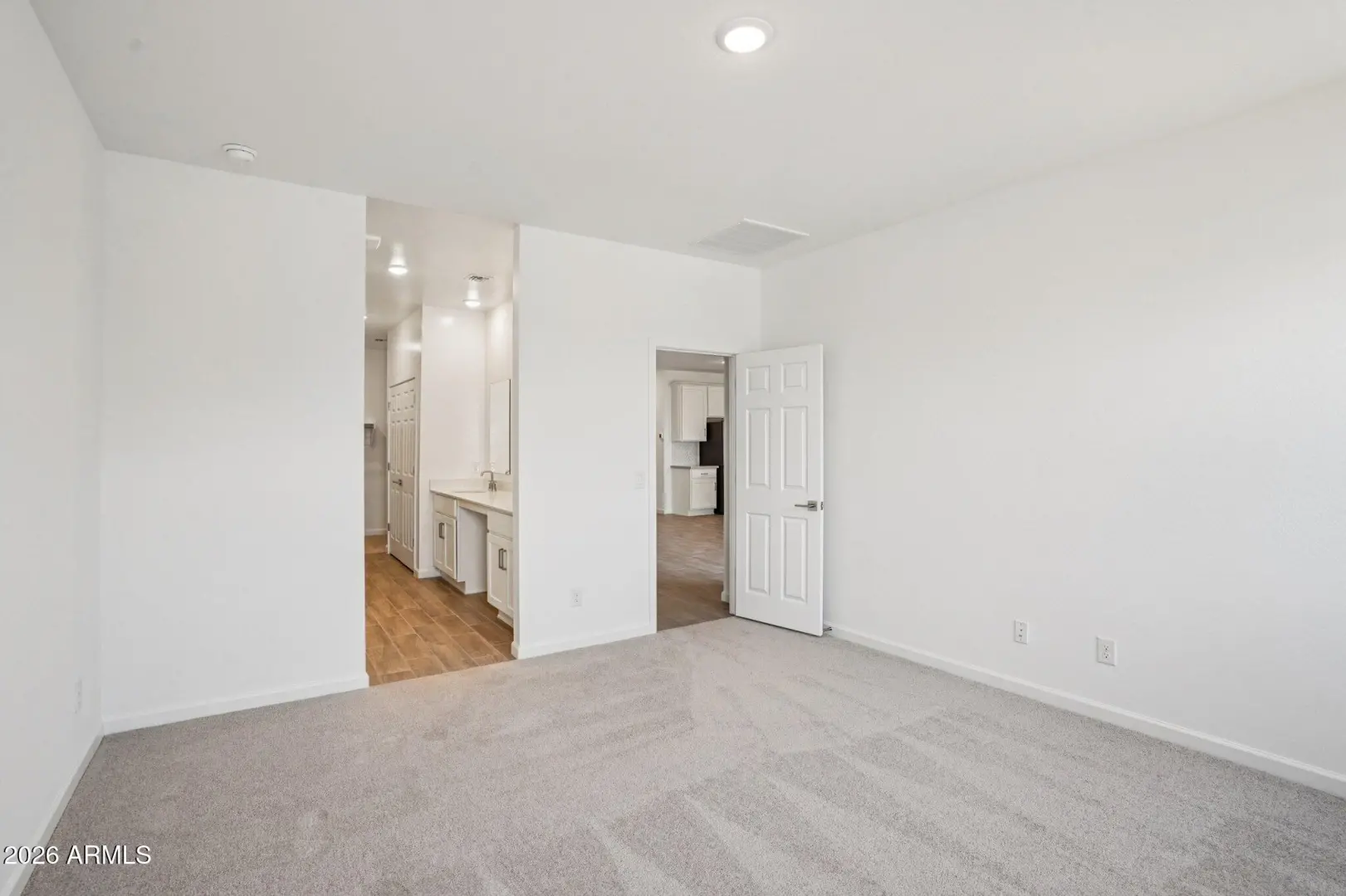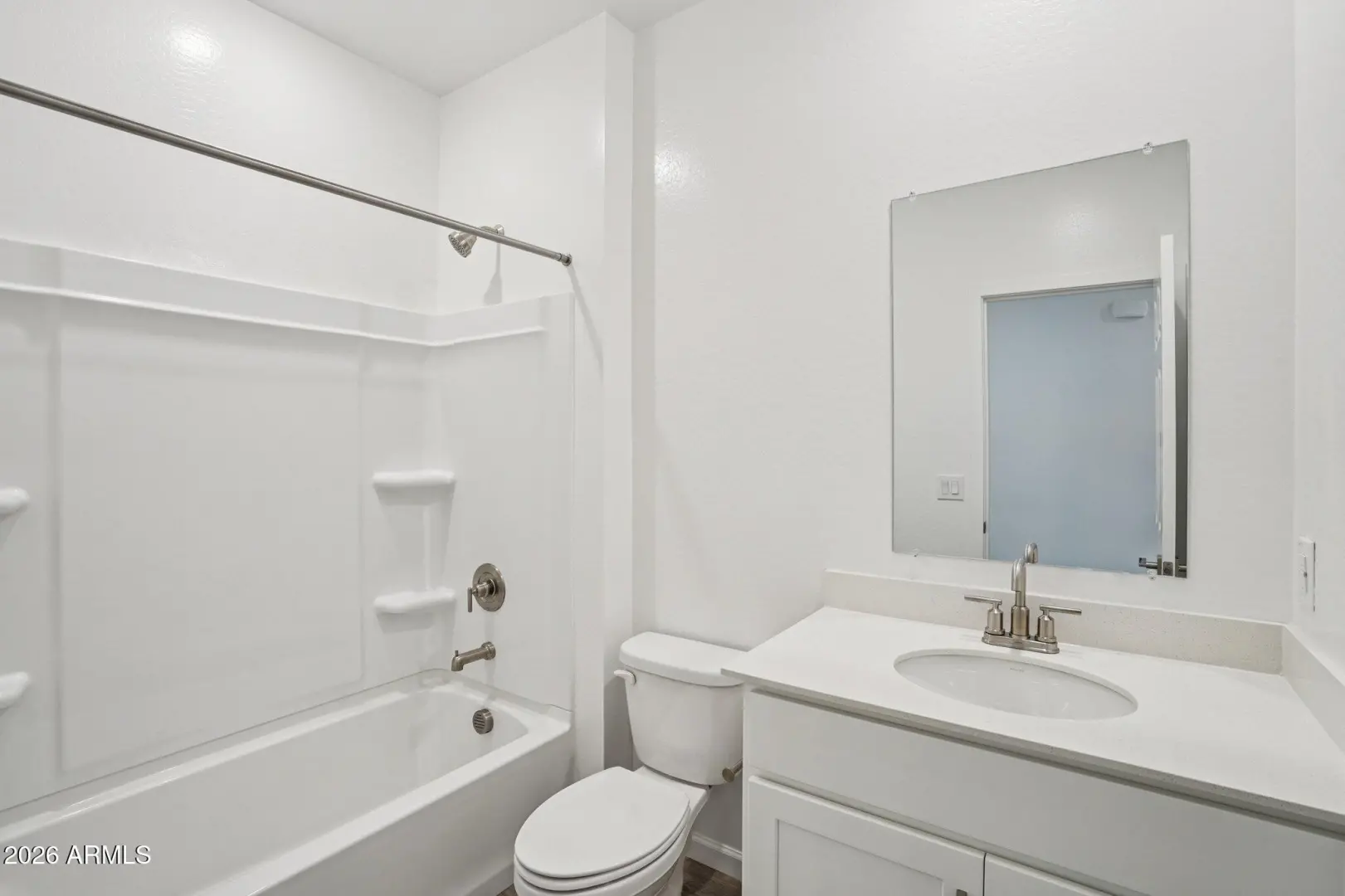 This home is ideal for first-time buyers, the Iris floor plan offers 1,797 sq ft of living space, 4 bedrooms, 2 bathrooms, a 2-car garage, and a large backyard. The kitchen features 42''white cabinets, beautiful Ivory White quartz countertops, a Artic White 1x3 chevron-patterned backsplash, and satin nickel hardware to tie it all together. This Iris comes fully equipped with stainless steel appliances, including a gas range, microwave, dishwasher, fridge, plus a white washer and dryer. The designer-curated finishes are completed with 7 x 22 wood-look tile floors in the main living areas and plush carpeting in the bedrooms and den. Getting ready is easy in the primary suite, which features dual sinks, a shower with a glass door, and a large walk-in closet. This Iris floor plan als