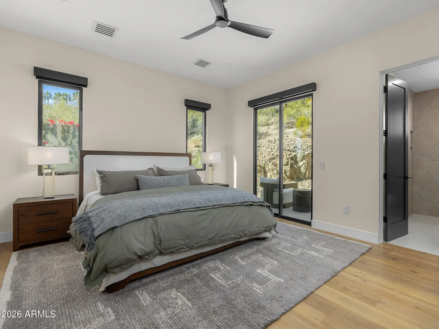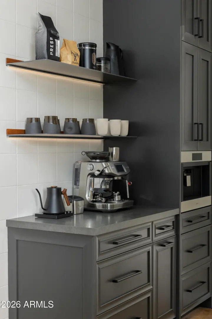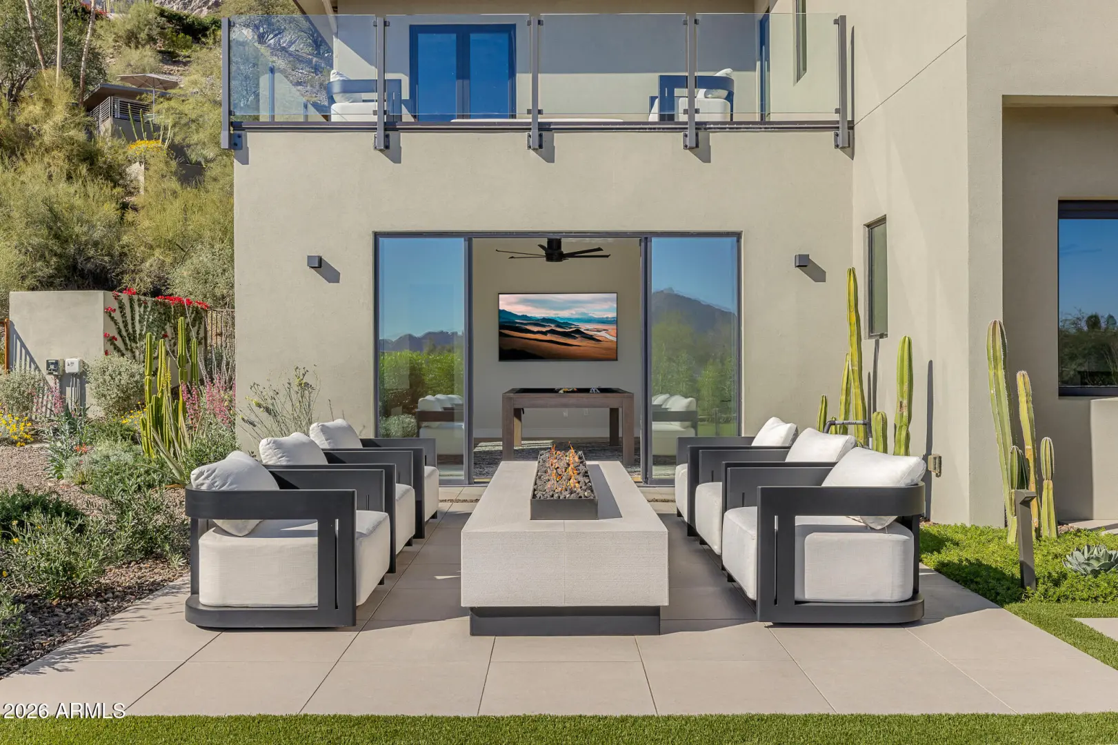Extraordinary modern home with an extraordinary vantage point of Paradise Valley. Perched high within the prestigious guard gated enclave of Clearwater Hills, this dramatic modern hillside estate captures sweeping, unobstructed views of shimmering city lights and iconic Camelback Mountain. Bold architecture, featuring a dramatic fireplace, a floating staircase, and walls of glass, frames the breathtaking scenery. Thoughtfully designed, the split floor plan delivers both grandeur and livability. The front walkway, featuring a tranquil water feature and meticulous landscaping, is the ''welcome home'' you've been waiting for. The residence offers five bedrooms, two private offices, a spacious game room, and an impressive full-service bar designed for elevated entertaining. At the center of